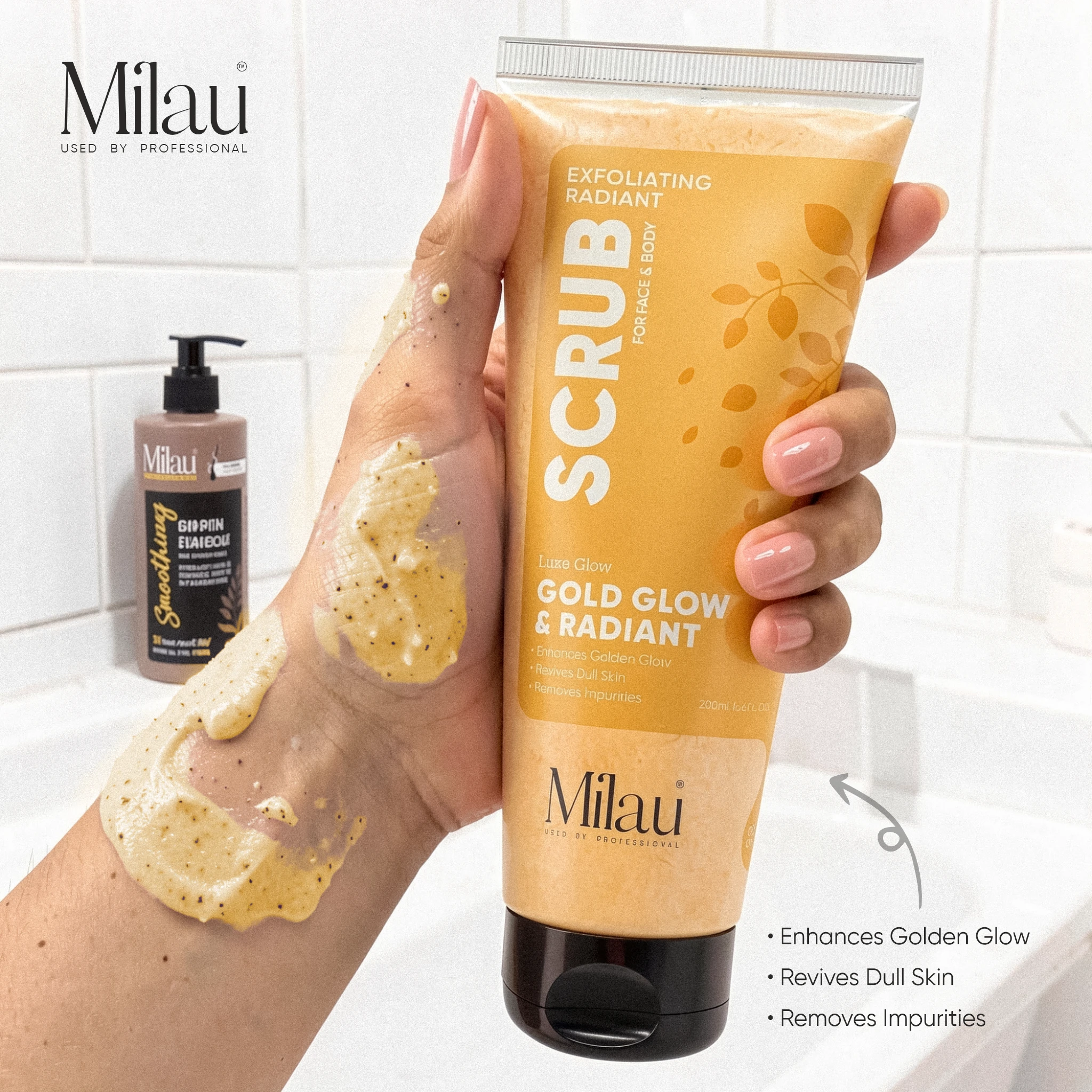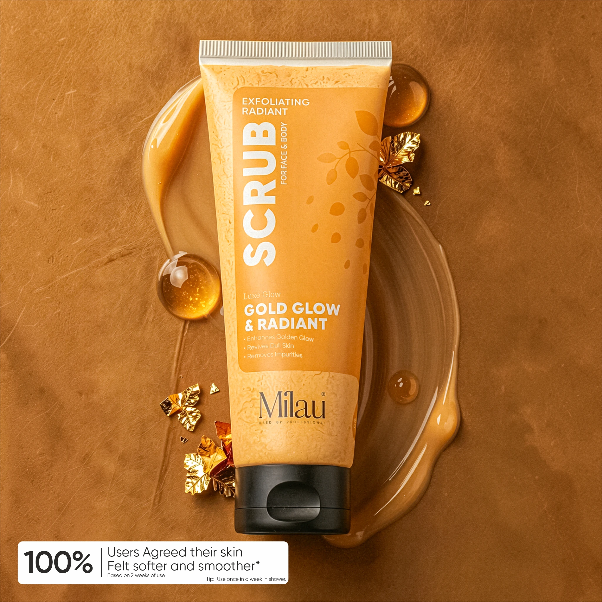 Indulge your skin in a luxurious exfoliation experience with our Gold Glow & Radiant Face & Body Scrub, a nourishing brightening scrub and tan removal scrub designed to gently remove dead skin cells and reveal smoother, glowing skin. Inspired by premium skincare rituals, this exfoliating scrub helps polish the skin’s surface while enhancing its natural radiance.
