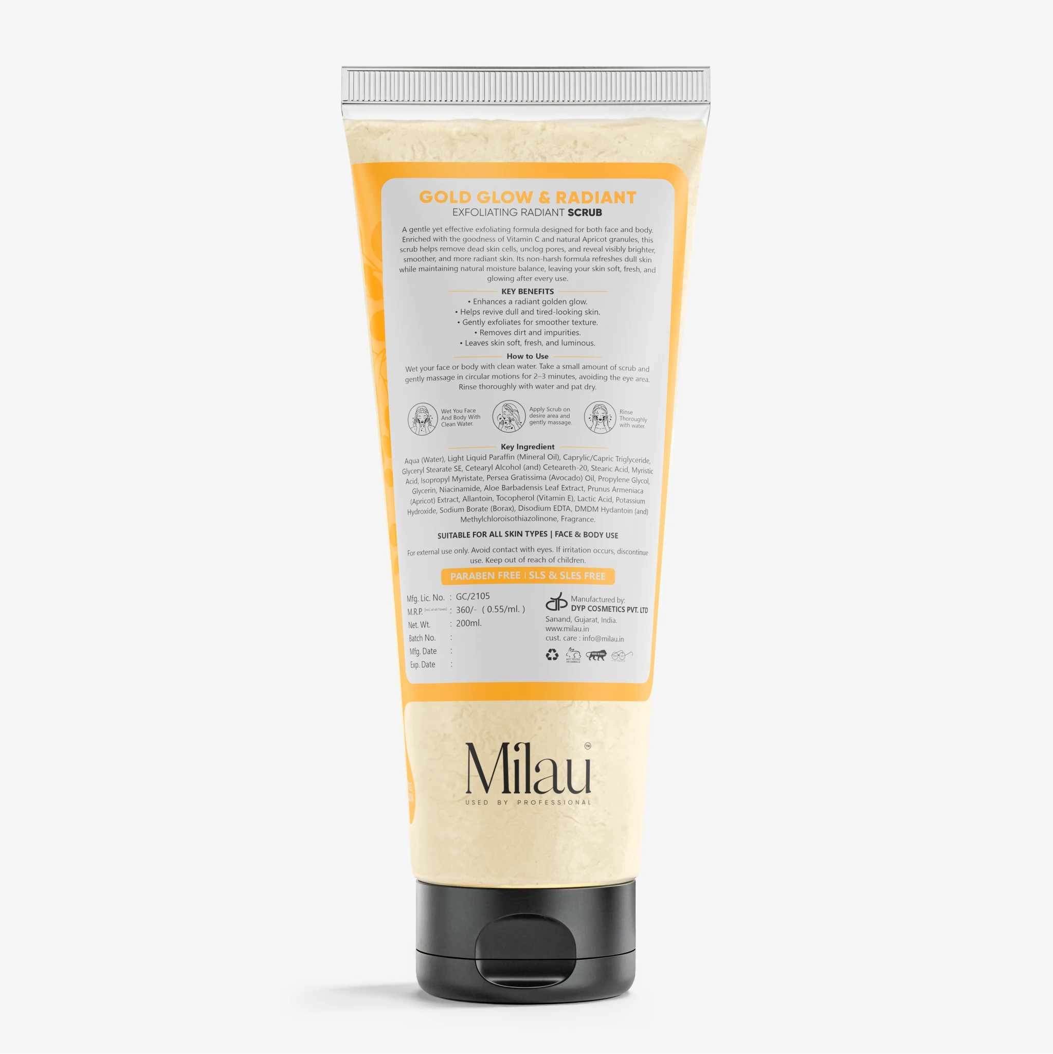 Crafted with a clean and skin-friendly formulation, this scrub is Paraben Free, SLS Free, and SLES Free, ensuring effective exfoliation without harsh cleansing agents.