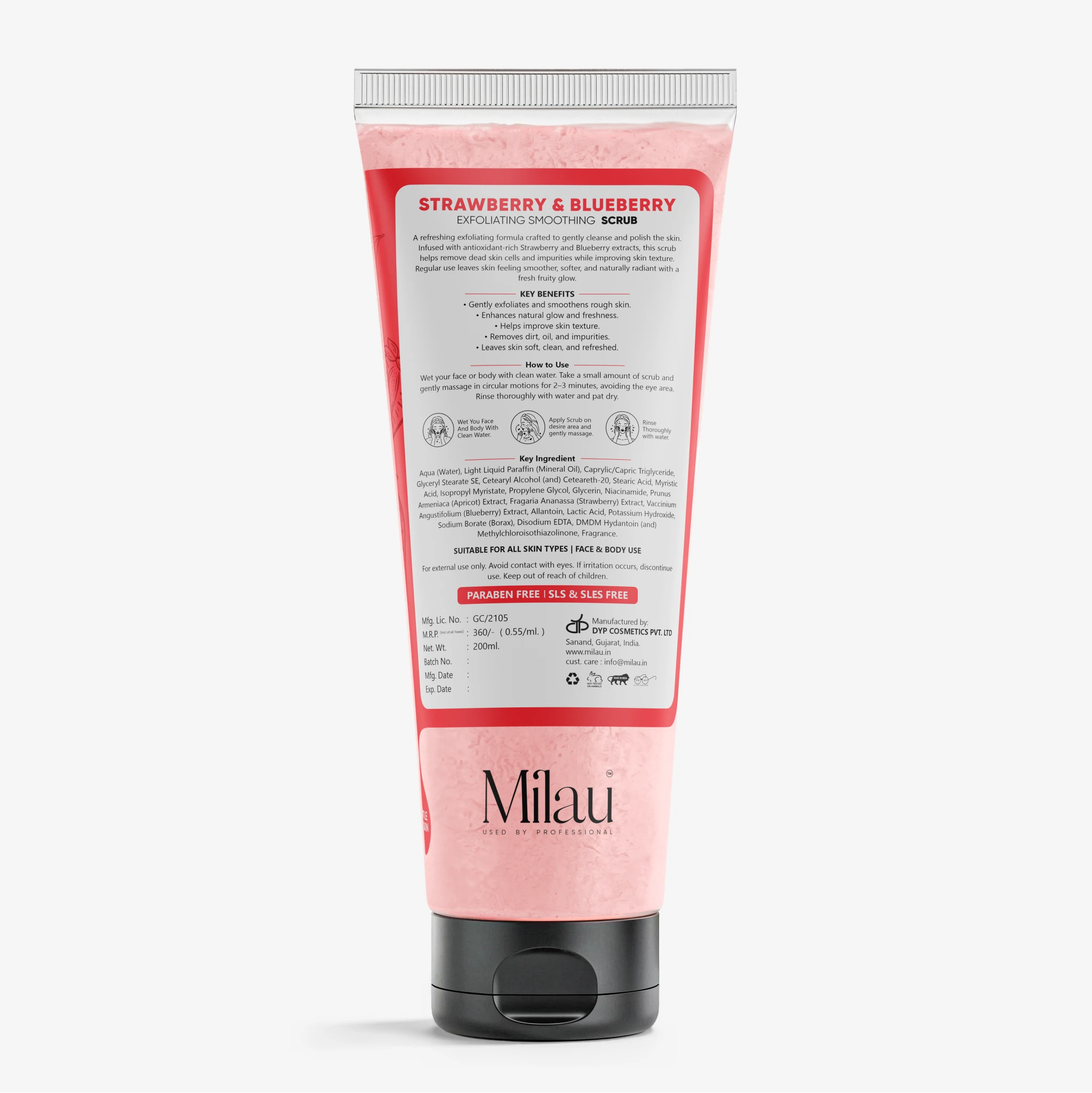 Crafted with a clean and skin-friendly formulation, this scrub is Paraben Free, SLS Free, and SLES Free, ensuring effective exfoliation without harsh cleansing agents.