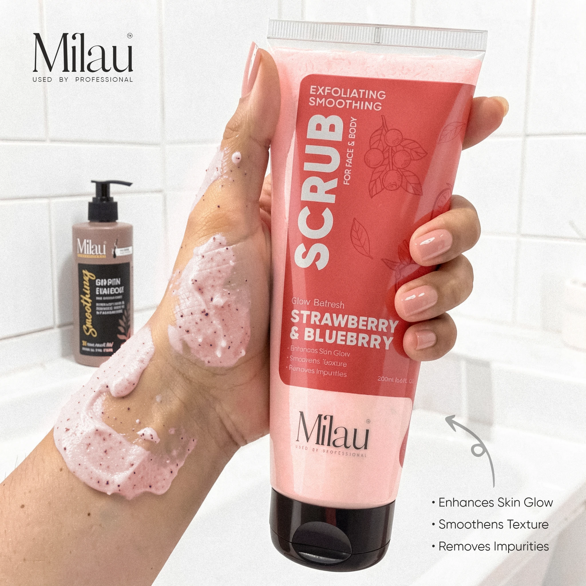 This face and body exfoliating scrub works to remove buildup caused by pollution, excess oil, and dead skin cells, leaving your skin feeling clean, soft, and rejuvenated. Strawberry is known for its natural skin-brightening properties, while Blueberry is rich in antioxidants that help support healthy-looking skin and improve overall skin texture.